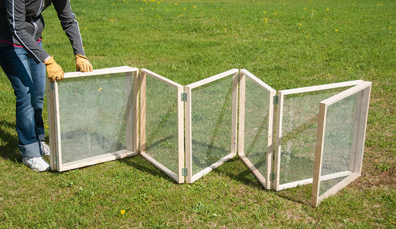 When assembled correctly, the pen should easily collapse into a lightweight and portable package that can then be quickly unfolded into a 4-by-4-foot movable run for your chickens.