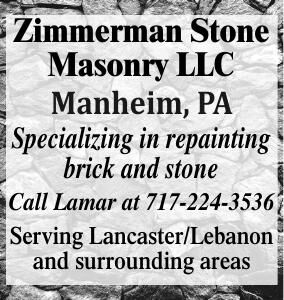 Zimmerman Stone Masonry LLC Manheim, PA Specializing in repainting brick and stone Call Lamar at 717-224-3536 Serving Lancaster/Lebanon and surrounding areas